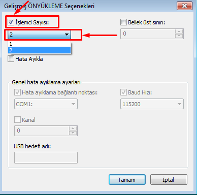 1. Açılan pencerede İşlemci Sayısı kutucuğunu işaretliyoruz ve alt kısımda etkin/aktif olan kutucuktan, bilgisayarınızdaki işlemcinin çalışan çekirdek sayısını tercihinize göre artırabilir (performans) veya azaltabilirsiniz (düşük güç tüketimi). İşlemci çekirdedek sayısını ayarlardıktan sonra Tamam butonuna tıklayıp, bilgisayarı yeniden başlattığımız takdirde yaptığımız değişiklik atkif/etkin olacaktır.