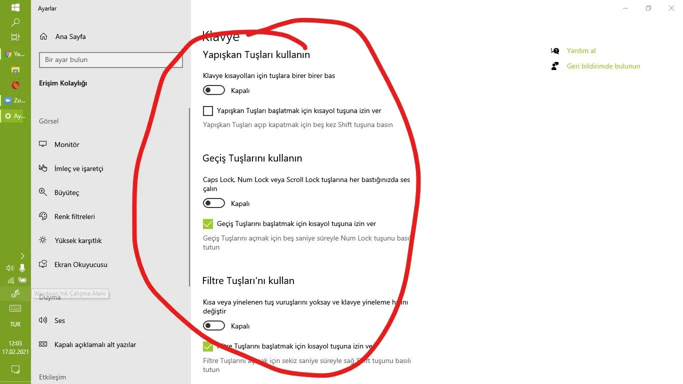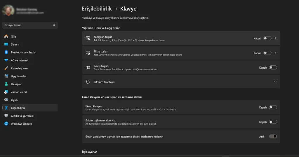 • Ayarlar menüsünden Yapışkan Tuşlar Nasıl Kapatılır?
