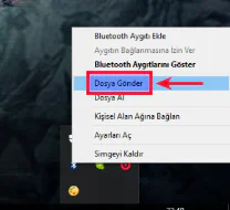 - Bluetooth üzerine tıklıyoruz ve açılan menü listesinde “Dosya Gönder” menüsüne tıklıyoruz.