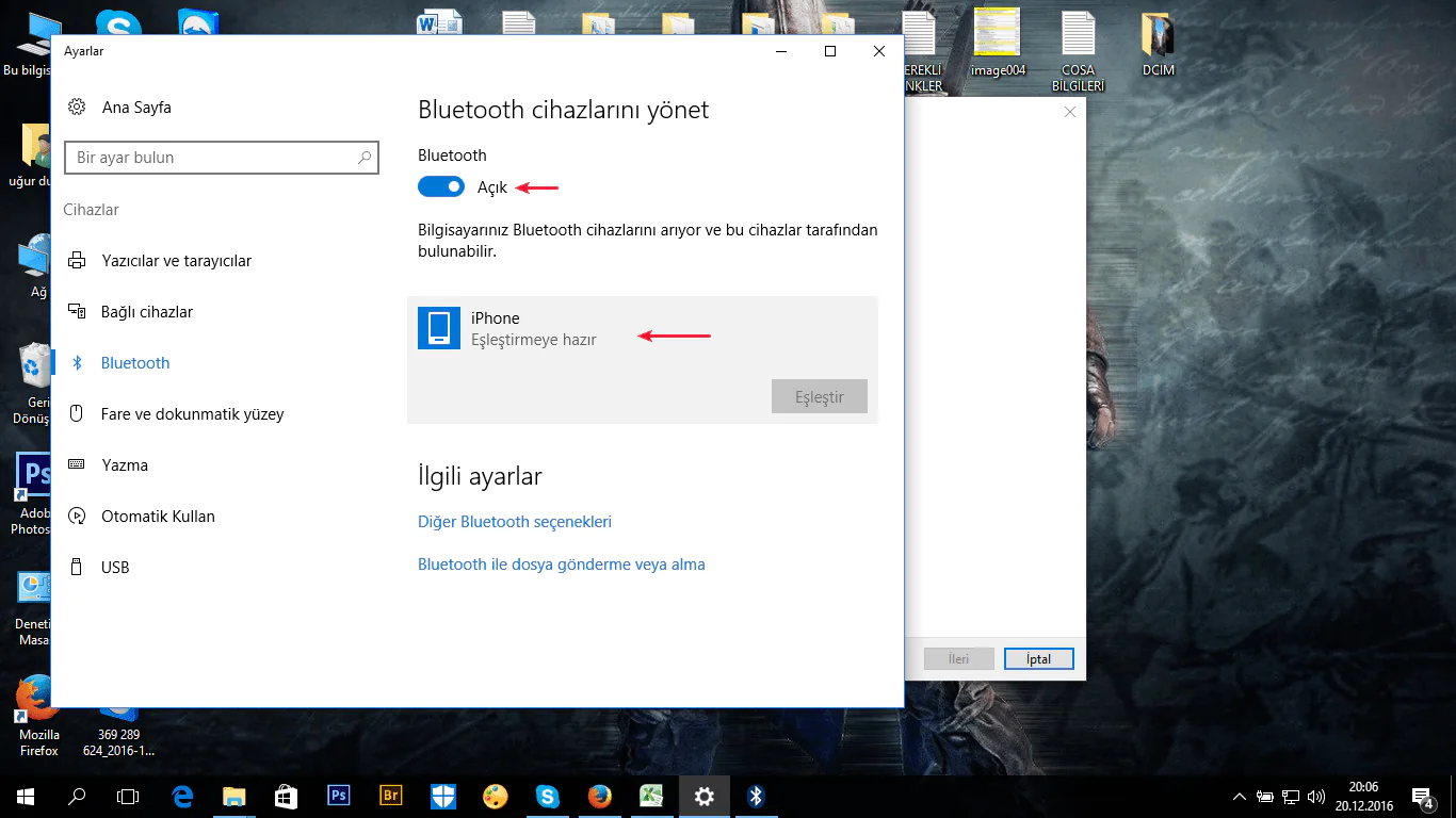 Kullanmakta olduğumuz tüm cihazlar neredeyse Bluetooth özelliğine sahip. Kablo bağlamak yerine artık telefondan bilgisayara ya da bilgisayardan telefona daha hızlı ve kolay bir şekilde Bluetooth üzerinden veri aktarımı yapabiliriz. Yapmamız gereken ilk başta bilgisayarla telefonumuzu eşleştirmek.
