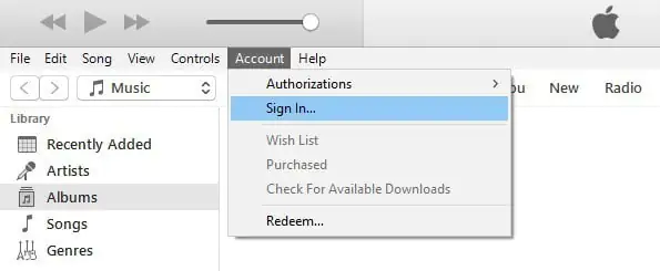 İlk önce iTunes’dan çıkış yapmayı deneyin, böylece tekrar giriş yapabilirsiniz. Oturumu kapatmak için, medya yürütücünün kütüphanesini açın, Hesap seçeneğini tıklayın ve Çıkış Yap seçeneğini seçin. Ardından, Hesap > Giriş Yap’ı tıklayın ve tekrar giriş yapmak için Apple Kimliğinizi giriniz.