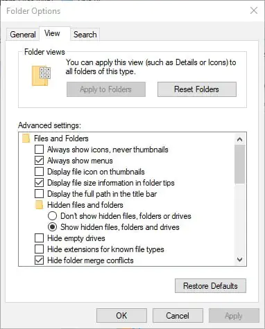 - Açılan Klasör Seçenekleri penceresindeki Görünüm sekmesini seçin.