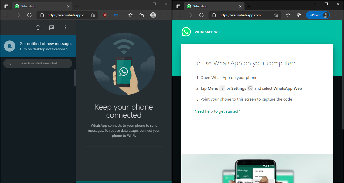 Bunu yapabilmek için en iyi metodlardan biri tarayıcınızda gizli bir pencere açıp web.whatsapp.com sitesine giriş yapmaktır. Fakat bunu yaptığınız takdirde tarayıcıyı kapatıp açtığınızda WhatsApp hesabınızdan çıkış yapmış olacaksınız. Bunu önlemek için farklı bir tarayıcı açıp ikinci hesabınıza o tarayıcı üzerinden giriş yapmanızı öneriyoruz. Böylece her seferinde tekrardan giriş yapmak zorunda kalmazsınız.