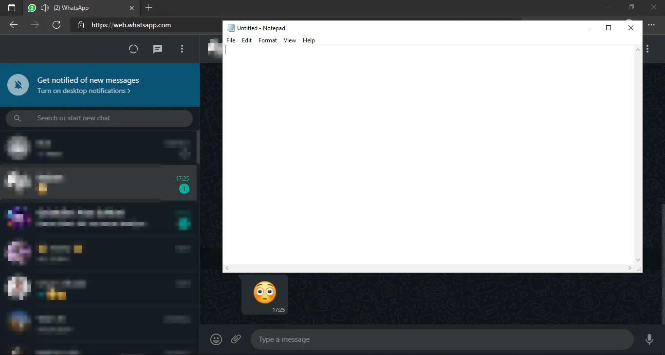- Başka bir program penceresi açın ve arka planda tam WhatsApp Web sohbetini görebilmeniz (veya yan yana yerleştirmeniz) için boyutunu değiştirin.