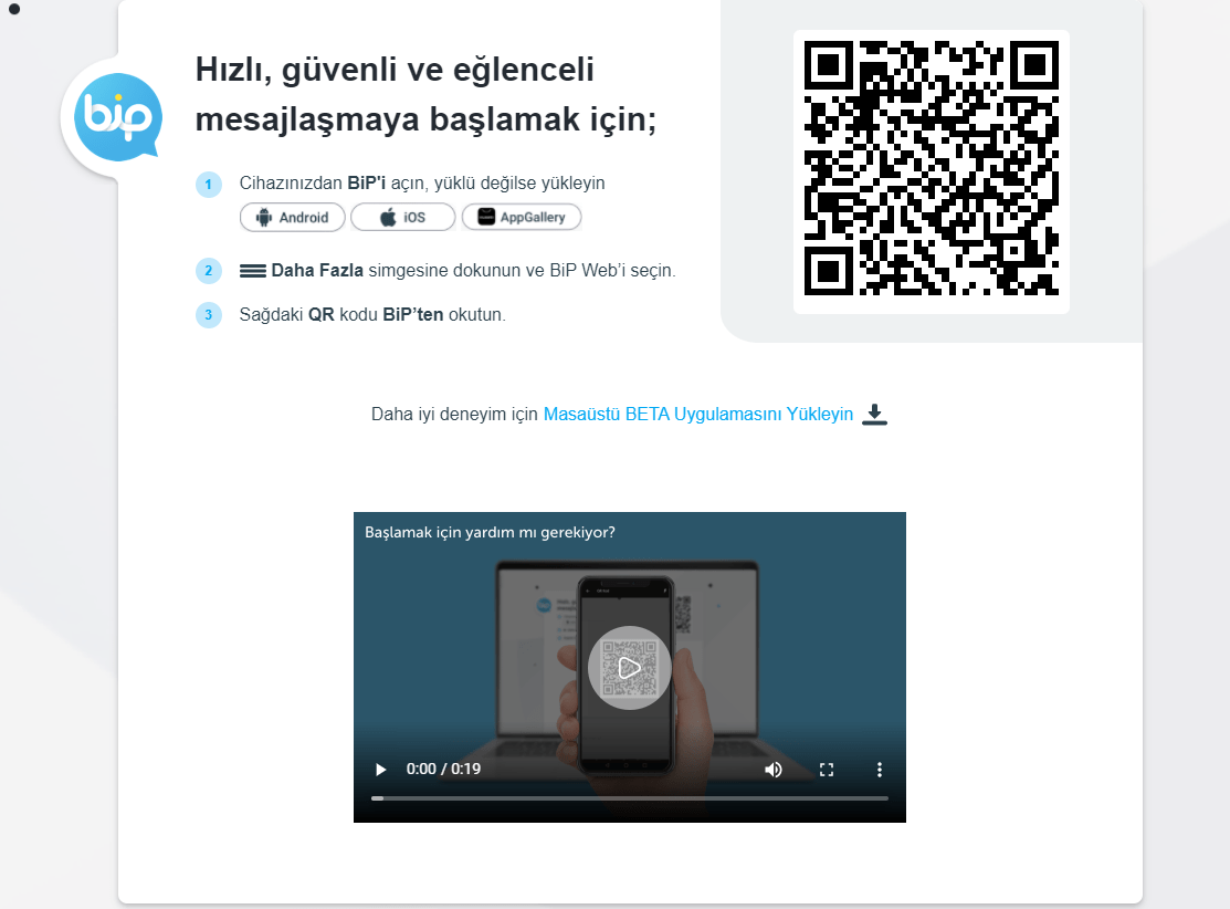 Açılan pencerede Bip Web seçeneğine giriş yaparak açılan kamera bağlantısı ile QR kodu taratalım.