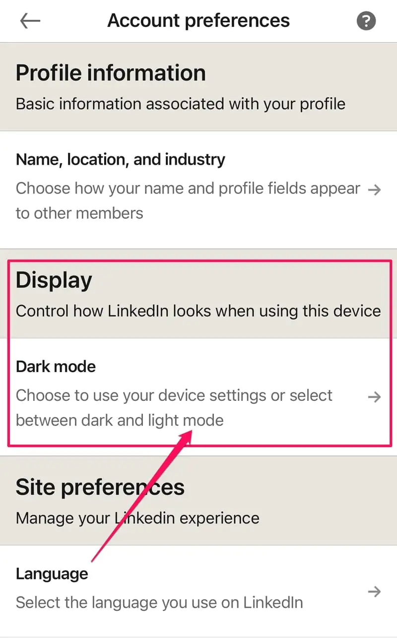 • LinkedIn’in karanlık modu, web sitesinde veya mobil uygulamasında etkinleştirilir.