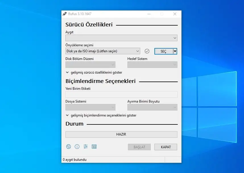 USB sürücüsünü doğru bir şekilde hazırlayacak, sahip olduğunuz ISO dosyasının içeriğini otomatik olarak çıkaracak ve içindeki dosyaları, önyüklenebilir hale getirmek için gereken ISO’daki tüm dosyalar da dahil olmak üzere USB cihazınıza düzgün bir şekilde kopyalayacak ücretsiz bir araç olan Rufus’u indirin.