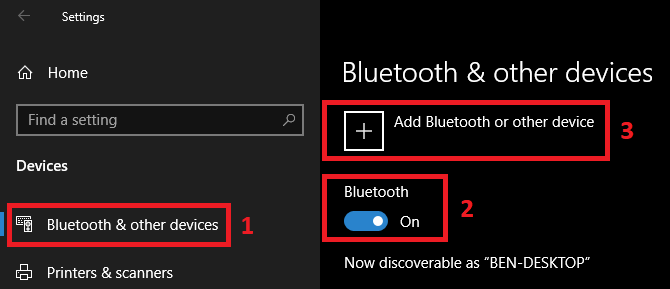 Windows 10‘da Bluetooth’u açmak için sırasıyla ‘Başlat (Start)’ ⟶ ‘Ayarlar (Settings)’ ⟶ ‘Cihazlar (Devices)’ ⟶ ‘Bluetooth ve diğer cihazlar (Bluetooth & other devices)’ menülerine tıklayın. Bluetooth (özelliği) kapalıysa, açın. Ardından, ‘Bluetooth ya da başka cihaz ekle (Add Bluetooth or other device)’ seçeneğine (menüsüne) tıklayın ve telefonunuzu eşleştirmek için (ekrandaki) talimatları (yönergeleri) izleyin.