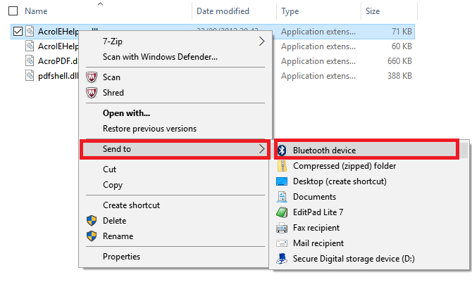 Bir dosyayı bilgisayarınızdan telefonunuza aktarırken, sadece ‘Dosya Gezgini (File Explorer)’ uygulamasını açın ve aktarmak istediğiniz dosyayı sağ tıklayın. Açılan menü listesinde sırasıyla ‘Gönder (Send)’ ⟶ ‘Bluetooth aygıtı (Bluetooth device)’ menülerine tıklayın.
