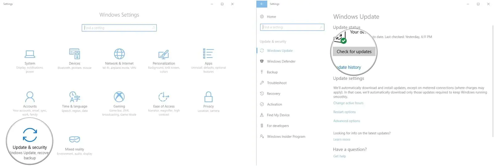 • ‘Güncell(eştir)me ve Güvenlik (Update & Security)’ menüsüne (seçeneğine) tıklayın.