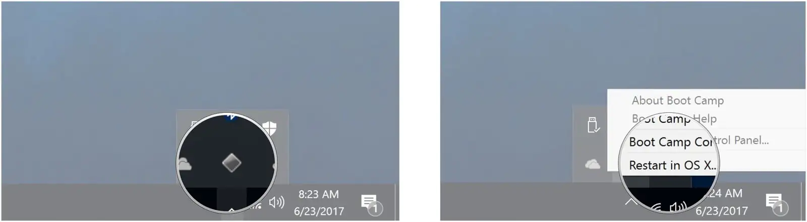 Boot Camp’in en iyi özelliklerinden biri, işletim sistemleri (macOS ve Windows 10) arasında geçiş yapmanın (bir sistemden diğerine geçmenin) oldukça kolay ve basit olması.
