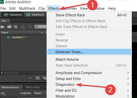 Sorunlu WAV dosyasını seçin, Adobe Audition’da açın ve Efektler Menüsüne gidin.