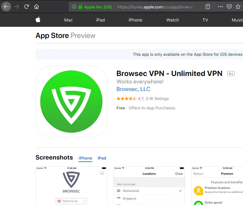 Yine aynı şekilde iOS cihazların uygulama marketi olan App Store’da browsec yazıp aratarak Browsec VPN uygulamasını bulabilir ve yükleyebilirsiniz.
