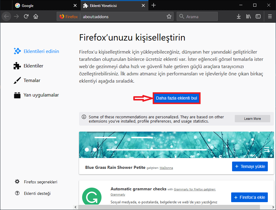 Açılan yeni sekmede ‘Daha fazla eklenti bul’ butonuna tıklıyoruz.