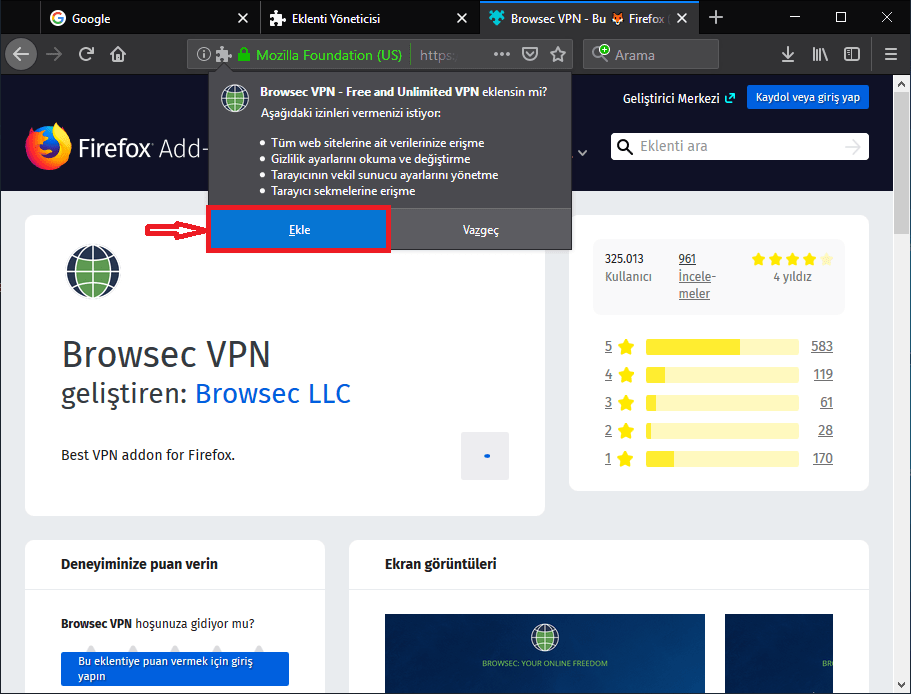 - “+ Firefox’a ekle” butonuna tıklıyoruz.