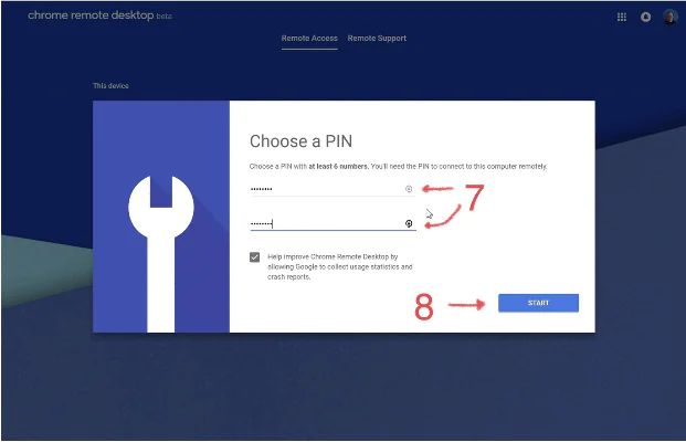 Bir sonraki adımda bir PIN (belirleyip) ekleyin. Belirlediğiniz bu PIN, ekstra güvenlik katmanı sağlar. Birisi sizin Google hesabınız ve şifrenizi bilse dahi, uzak bağlantı yapabilmesi için bu PINi de bilmesi gerecek. Belirleyeceğiniz PINin en az haneli bir sayı olması gerekiyor.