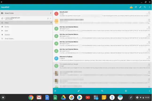 Chromebook’taki varsayılan e-posta uygulaması iyi. Çoğu kullanıcının ihtiyaç duyduğu şeylerin çoğunu yapar. Ancak, e-postanız için biraz daha fazlasına ihtiyaç duyan kullanıcılardan biriyseniz, Aqua Mail bunu sağlar. Birden çok hizmetten birden çok e-posta hesabını bulut depolama ve sağlam güvenlik özellikleriyle entegrasyona bağlayabilir. Aqua Mail sağlam bir dizi kullanışlı özelliğe sahiptir.