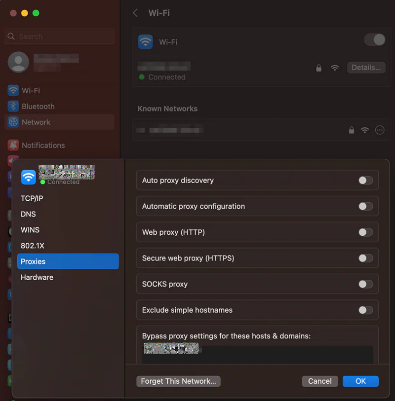 Apple menüsünden “Sistem Ayarları”na girin. “Ağ” bölümünü açın ve kullandığınız ağ bağlantısını seçin. “Ayrıntılar” ardından “Proxy’ler” sekmesine tıklayın. Burada manuel veya otomatik proxy ayarlarını görebilir ve devre dışı bırakabilirsiniz.