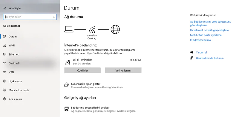 Denetim Masası’ndan “Ağ ve Paylaşım Merkezi”ni açın. “Bağdaştırıcı ayarlarını değiştir” seçeneğine tıklayın. Aktif internet bağlantınıza sağ tıklayıp “Özellikler”i seçin.