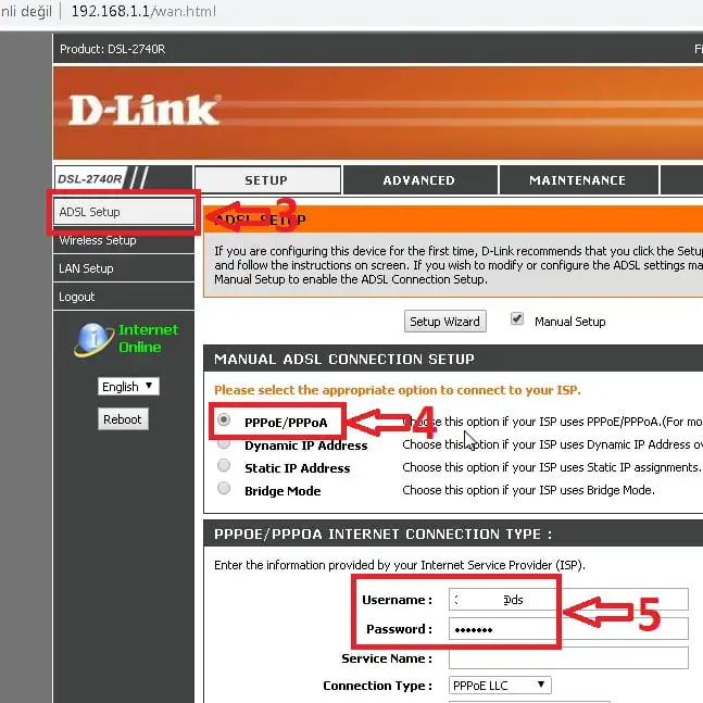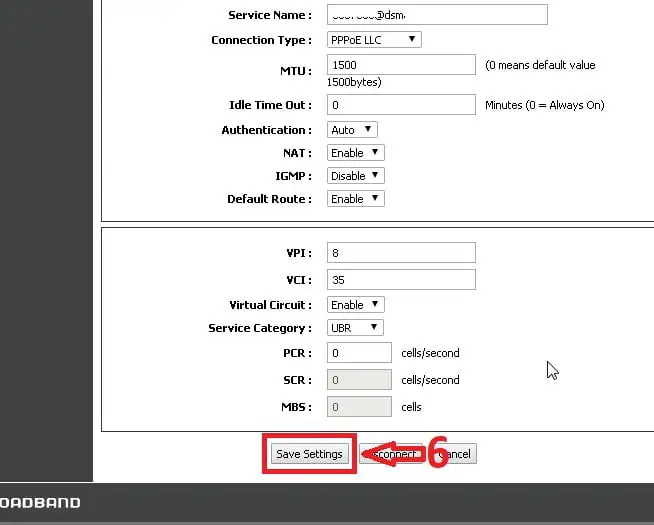 - Daha sonra PPPoE seçeneği seçerek Kullanıcı Adı (Username) ve Şifre (Password) kutucuklarına erişiyoruz. Bu kutucuklara, hattımıza ait olan ADSL kullanıcı adı ve ADSL şifre bilgilerimizi yazıyoruz. Kullanıcı adı bilgisinin sonuna operatör domainini (@ttnet, @dsmart, @superonline, @vodafone, @turk.net, vb.) ekliyoruz ve sayfanın en alt kısmında bulunan ‘Save Setting’ butonuna tıklayarak yazdığımız ayarları kaydediyoruz. Bütün bu işlemlerin ardından modemimizin kurulumu tamamlanmış olacaktır.