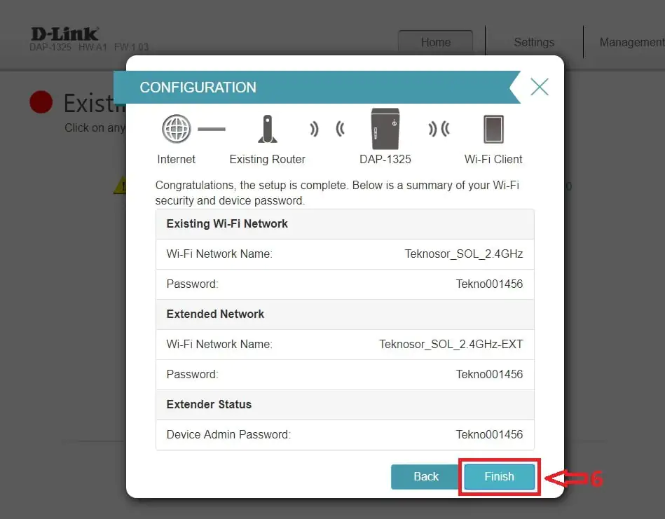 - Menzil genişleticimizin adını dilediğimiz şekilde değiştirdikten sonra Finish butonuna basarak kurulumu tamamlıyoruz.