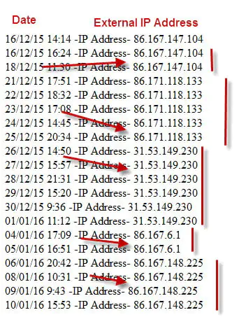 Bu, kendi harici IP adresimin bir ay içinde nasıl değiştiğini gösteren bir ekran görüntüsüdür.