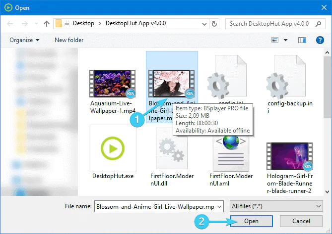 - İndirilen Live Wallpaper’ı kaydettiğiniz klasöre gidin ve onu seçiniz.
