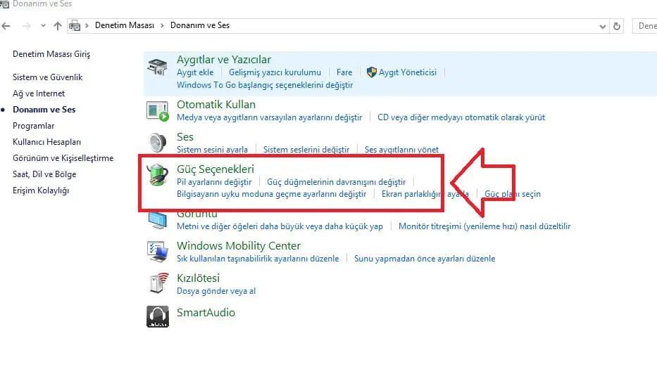 • Açılan pencerede ‘Güç Seçenekleri’ menüsüne tıklıyoruz.