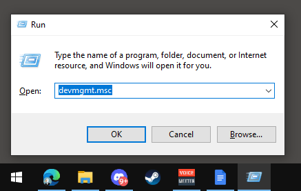 2. Boş alana devmgmt.msc yazın ve Enter tuşuna basın.