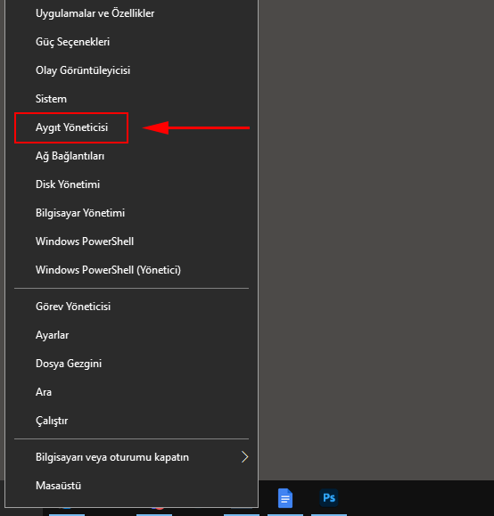 Ayrıca Başlat menüsüne sağ tıklayarak “Aygıt Yöneticisi”ni seçebilirsiniz.