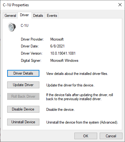 Burada dikkat edilmesi gereken başka bir şey de, Aygıt Yöneticisi ayarı altındaki “Sürücüye Geri Dön” seçeneğinin gri olup olmaması. Bu, Windows 10’da bir sürücüyü önceki sürüme geri alamayacağınız anlamına gelir.