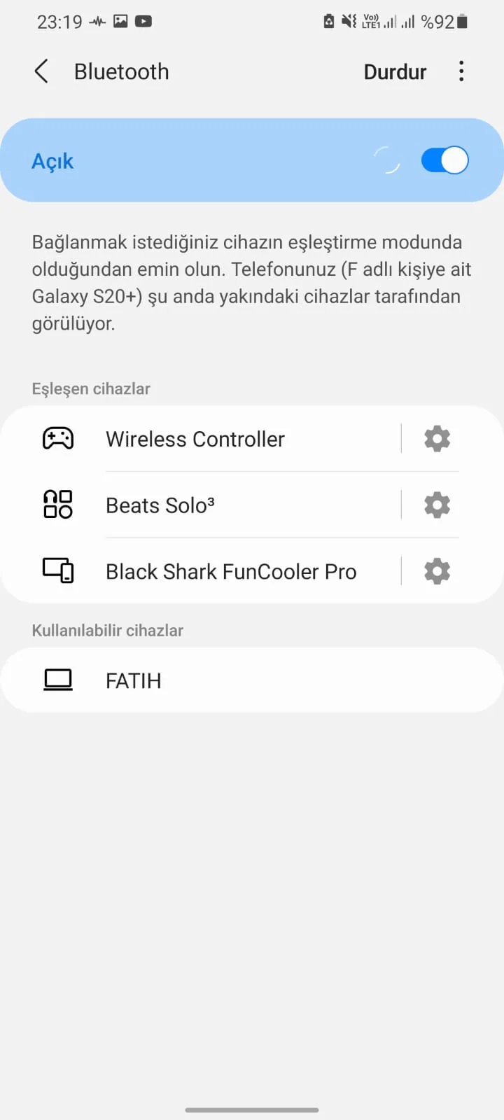 1-) Akıllı telefonumuzda Bluetooth’u aktif hale getirelim.