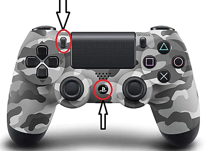 2-) Dualshock üzerinde bulunan PS tuşu ve Share tuşuna aynı anda 2-3 saniye basılı tutalım , arkasında bulunan led ışık göstergesi fasılalı bir şekilde yanıp sönmeye başlayınca elimizi çekelim