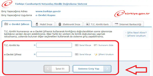 3. T.C. kimlik numaranız ve mevcut şifrenizle giriş yapın.