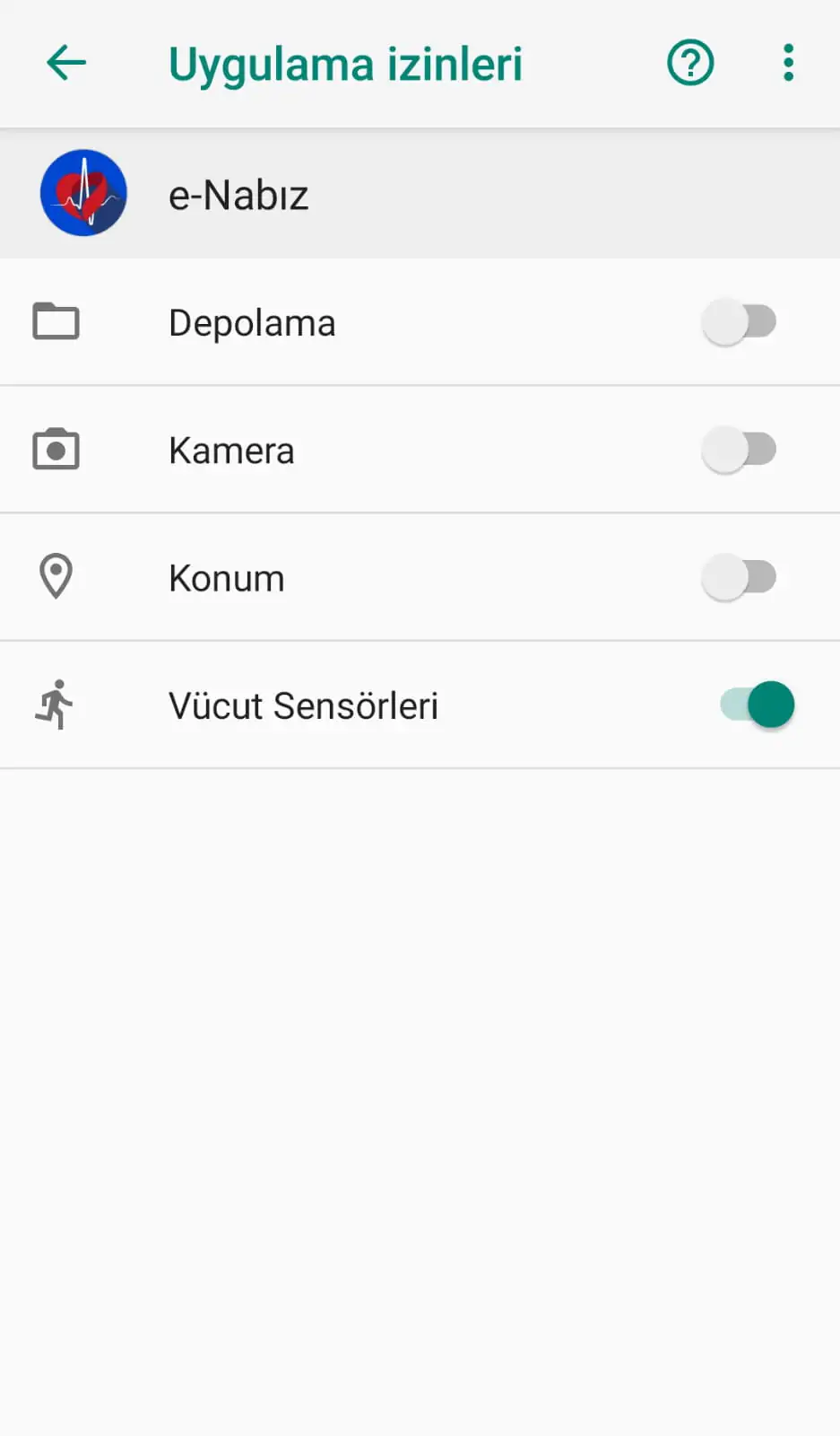 Şifremiz ile giriş yapınca bizleri bu ekran karşılıyor ve burada Google hesabı bağlamamızı istiyor. Bağlarsak Google fit verilerimizi yani akıllı saatlerimizin vs. Topladığı verileri bu şekilde ekliyoruz. Eğer bu ekranı atladıysak cihazımızın ayarlarından. Uygulamalar’ı açıp e-nabız uygulamasının izinlerinden vücut sensörlerini etkinleştirebiliz.