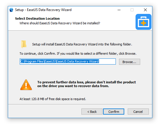 Herhangi bir uygulama gibi, EaseUS veri kurtarma sihirbazını kurmak oldukça kolay. Resmi web sitesinden EaseUS yazılımını indirin ve indirdiğiniz uygulama dosyasına çift tıklayıp kurulumu başlatın. Kullanıcı sözleşmesini ve kullanım koşullarını kabul edin ve uygulamanın kurulacağı klasörü seçin.