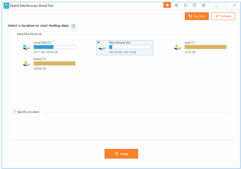 Proğramı çalıştırdıktan sonra, veri kurtarma yapılacak sürücüyü (diski) veya spesifik (belli) bir klasörü seçiyoruz.
