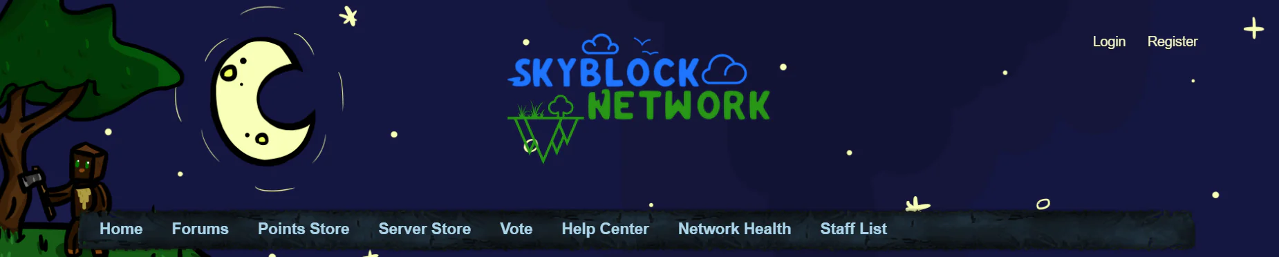 SkyBlock Network, yakın topluluğa sahip ve oyuncuların ilgisini çekecek birçok benzersiz, yarı-vanilla Hayatta Kalma temalarına sahip bir hayatta kalma tabanlı Minecraft Sunucusu. 2.000 oyuncu kapasitesine ve sağlam bir 5.000 Discord üyesine sahiptirler. Ana temaları, ekonomi ve oyuncu tabanlı ve mağaza tabanlı sistemleri oyun para birimi kazanmak ve ticaret yapmak için kullanır.