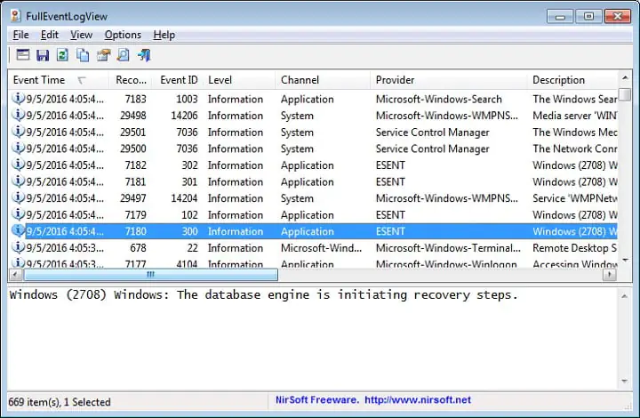 Bu, NirSoft’un en yeni etkinlik görüntüleyicisidir, 9 Eylül 2016’da piyasaya sürüldü. FullEventLogView, tüm Windows etkinliklerinin ayrıntılarını bir tabloda gösteren Windows 10 için basit bir araçtır. Bu araçla, yerel bilgisayarınızın olaylarını, ağınızdaki uzak bilgisayarın olaylarını görüntüleyebilir ve bu olayları dışa aktarabilirsiniz.