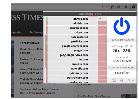 Ublock Origin, düşük kaynak yükü ile basit, verimli engellemeye odaklanan tarayıcı tabanlı bir reklam engelleyicidir. Uzantı, bilinen reklamcılık ve kötü amaçlı yazılım kaynakları için bir dizi filtre listesiyle birlikte gelir; ekstra filtre listeleri ve ana bilgisayar dosyalarından kendi özel filtrelerinizi okuma ve oluşturma seçeneği bulunur.