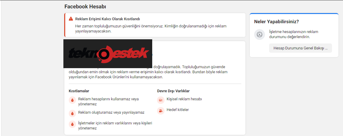 Facebook Reklam Hesabım Kısıtlandı