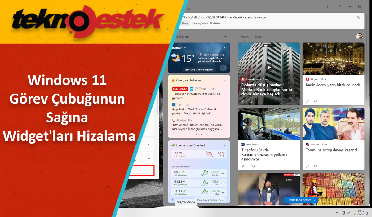 Windows 11 Görev Çubuğunun Sağına Widget’ları Hizalama
