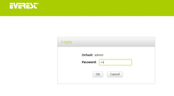 • Açılan kullanıcı adı ve şifre sayfasında Password kutucuğuna admin yazınız ve OK butonuna tıklayınız.