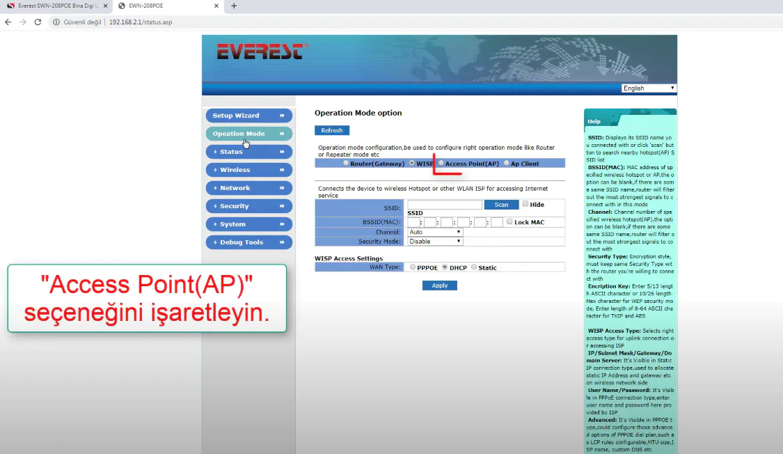 Everest EWN-208POE AP Modu(Kablolu) Kurulumu