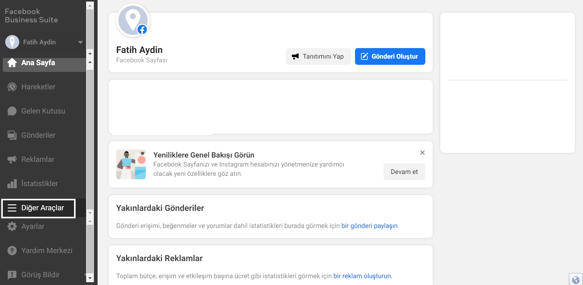 - Açılan ekranda çeşitli menüler karşımıza çıkacak , ana ekranımızın sol tarafında bulunan menüden ‘Diğer Araçlar‘ menüsüne giriş yapalım.