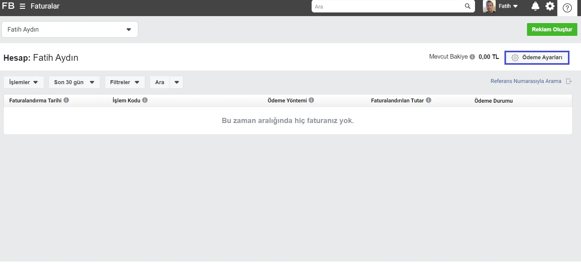 - Karşımıza gelen ekranda ‘Faturalandırma‘ seçeneğine tıklayalım.