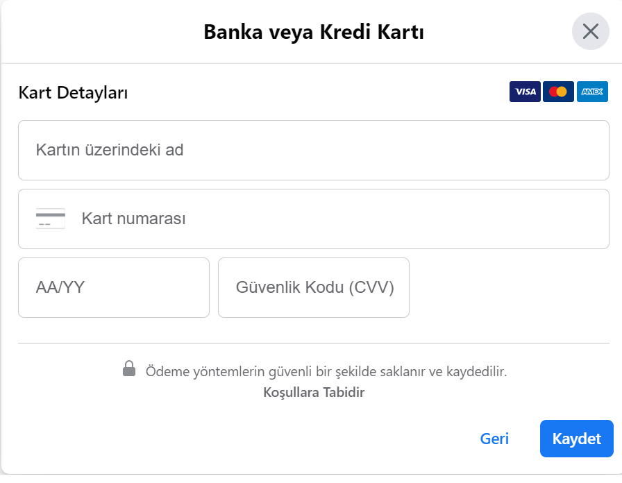 - Bu ekranda standart kredi kartı bilgilerimizi gireceğimiz bir ekran bulunmakta , burada ki bilgileri doldurarak ‘Kaydet‘ demeniz gerekiyor.