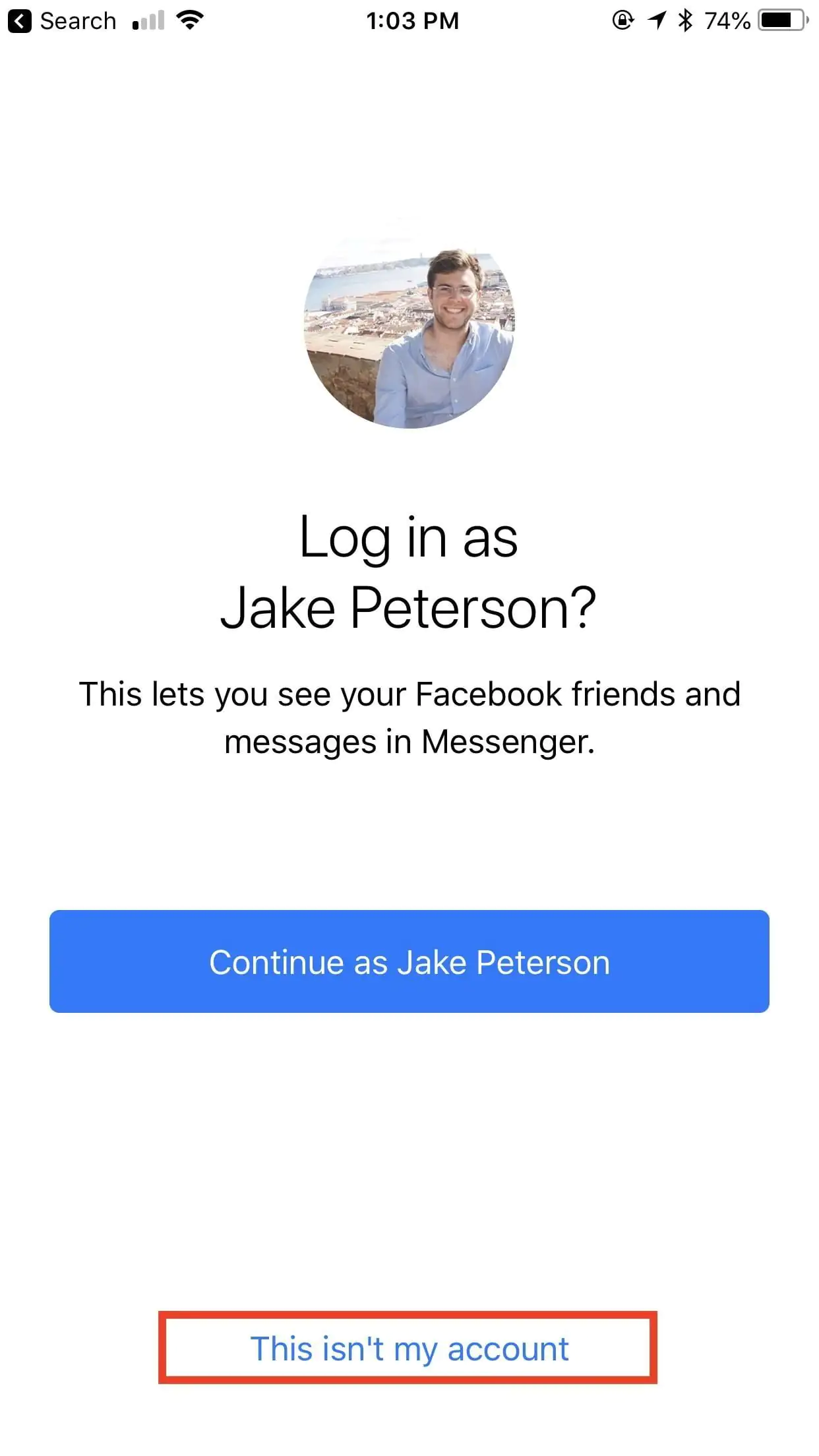 Girdiğiniz (cep telefon) numara(sı) bir Facebook hesabında kayıtlı ise, Messenger tekrar o Facebook hesabı ile giriş yapmanızı isteyecek. Ekranın altındaki ‘Bu benim hesabım değil (This isn’t my account)’ linkine tıklayıp, bu öneriyi (seçeneği) atlayabilirsiniz.