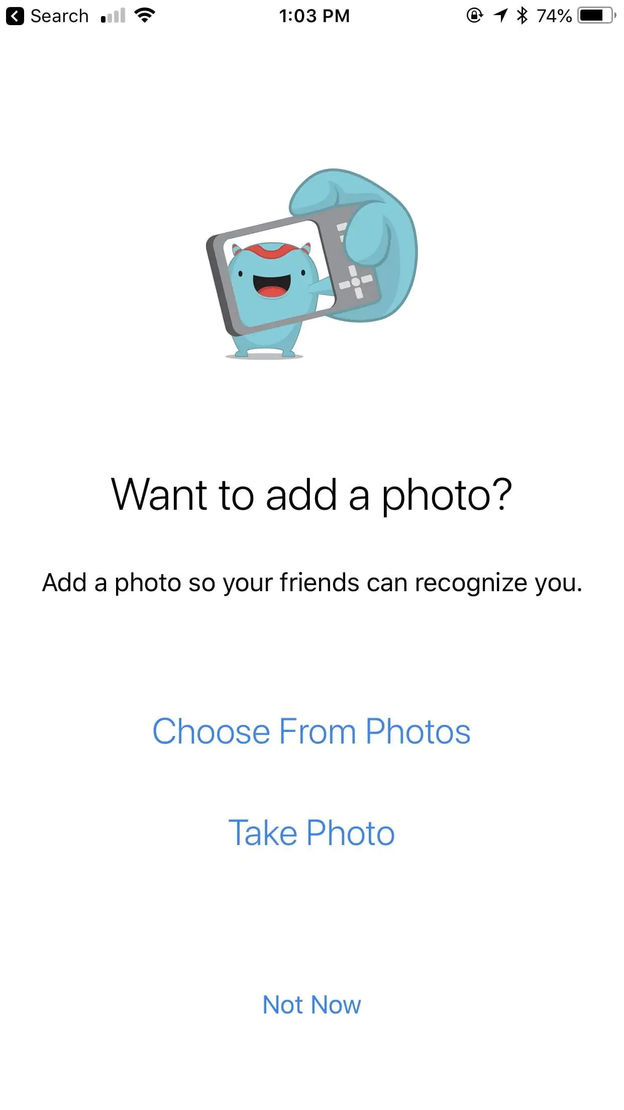 Takip eden sayfada, ‘Fotoğraflardan Seç (Choose From Photos)’ veya ‘Fotoğraf Çek (Take Photo)’ seçeneklerinden birine dokunarak, profil fotoğrafı(nızı) ekleyebilirsiniz. Veya ‘Şimdi Değil (Not Now)’ linkine dokunup, bu adımı atlayabilir ve daha sonra profil fotoğrafı ekleyebilirsiniz.