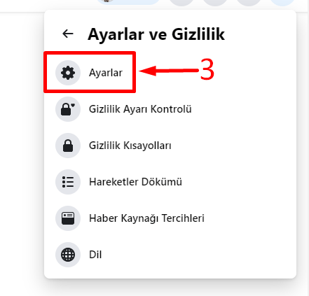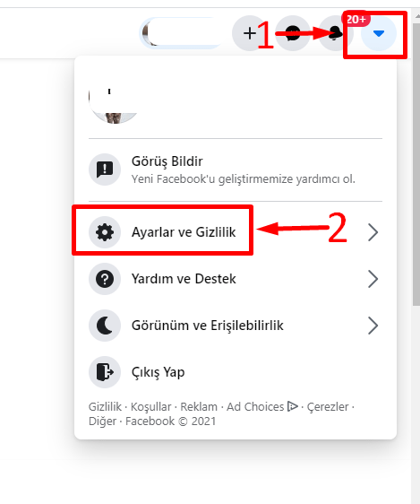 Öncelikle Facebook hesabımıza giriş yaparak işlemlerimize başlıyoruz. Sonrasında sağ üstte bulunan menü çubuğuna tıklayarak Ayarlar ve Gizlilik bölümünden Ayarlar sekmesine geçiş yapıyoruz.